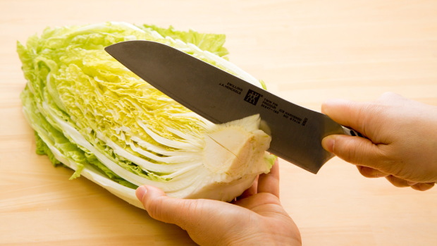 まるまる一個の白菜の選び方としては、ずっしりと重みがあって、外葉の緑が濃く、葉先まで固く巻いているものが最良となります。カット白菜を使用する場合も多いと思いますが、カット白菜なら切り口が白くてみずみずしく、断面が水平で盛り上がっていない点がポイントで、外葉が緑で中の葉が黄色いものが良い白菜です。